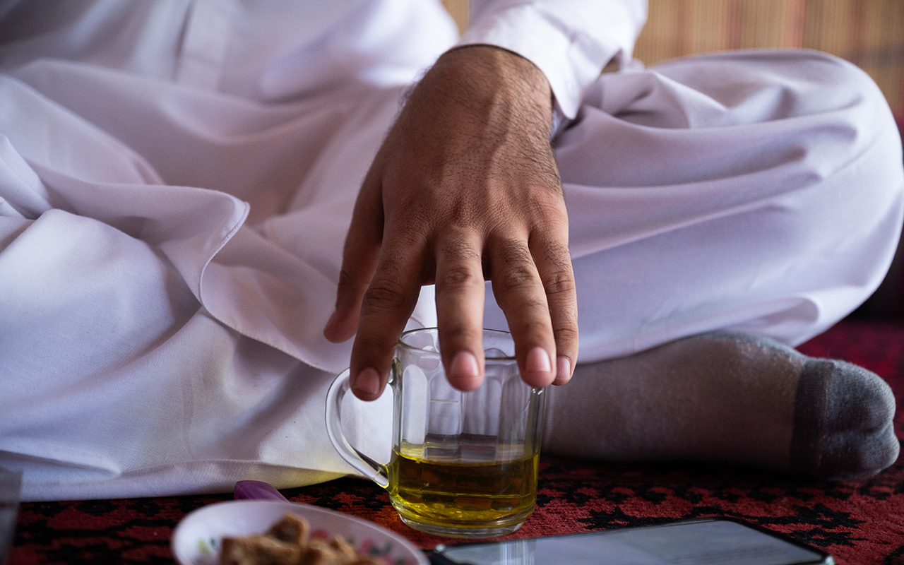 Baseer sat cross-legged on the well-worn carpet, balancing a cellphone on each knee and grasping a cup of green tea between his jeweled fingers. His neat mustache caught a bead of sweat as it dripped from his brow. His impeccable grooming was at odds with the mismatched socks peeking from beneath his shalwar kameez.