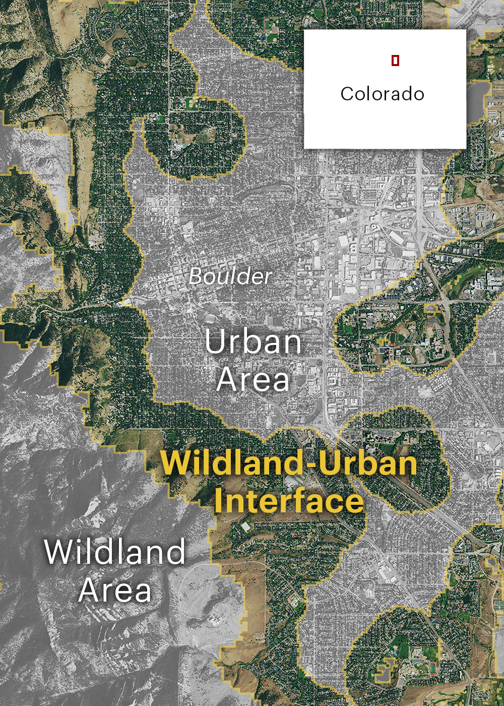 The disaster put an exclamation point on what scientists, planners and federal officials warned for years: Communities outside the traditional wildland-urban interface, or WUI, are now vulnerable as a changing climate, overgrown forests and explosive development across the West fuel ever-unpredictable fire behavior. Fire experts define the WUI, pronounced woo-ee, as areas where plants such as trees, shrubs and grasses are near, or mixed with, homes, power lines, businesses and other human development.
