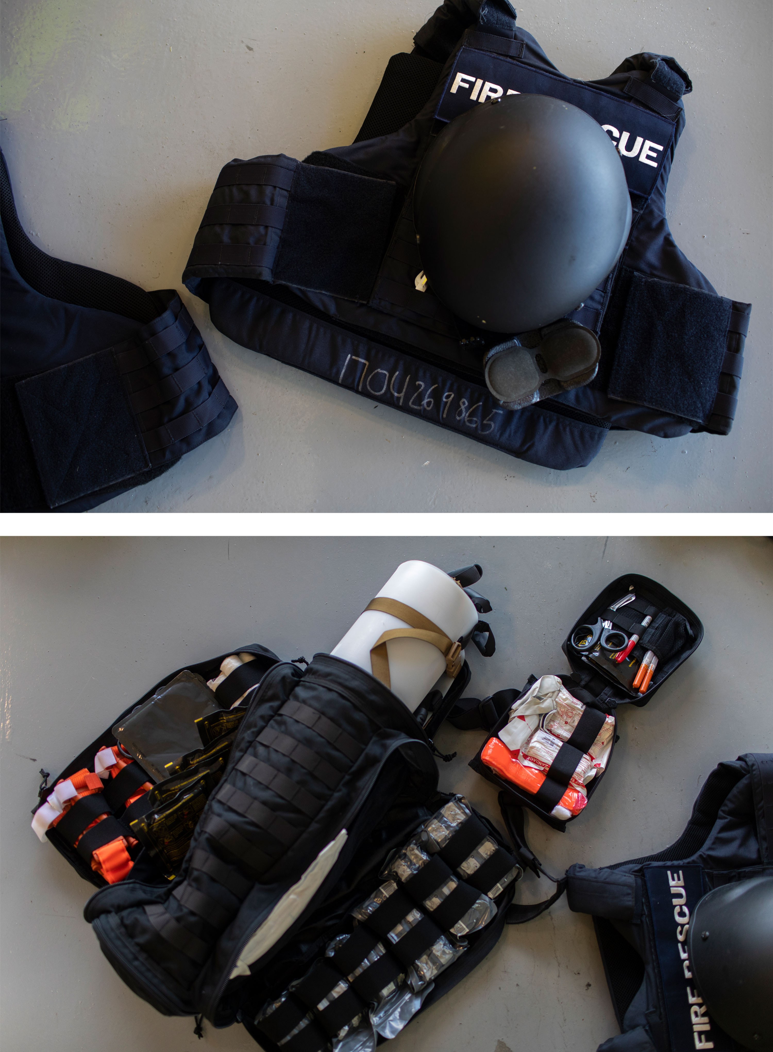 After a recommendation from Saez in 2015, the department bought about 20of the bulletproof vests and helmets. The vests had pouches filled with tourniquets, special needles to relieve air in the chest, and quick-clotting trauma bandages.